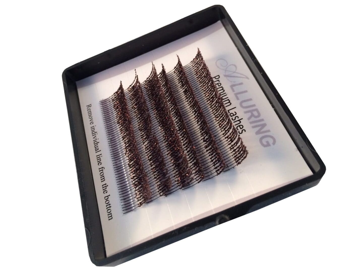 Alluring Mixed Colored , Dark Brown Volume Lashes 5D Lash Fans C & D curl 0.07mm